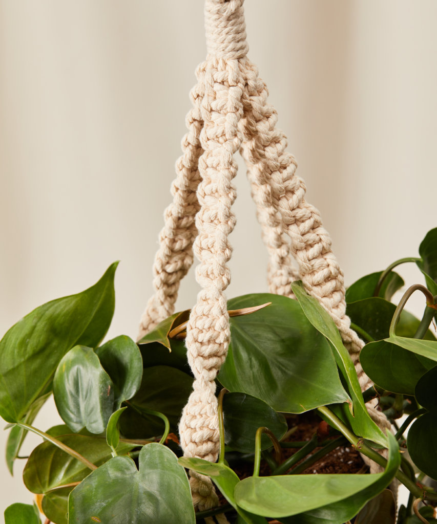 Watering frequency and light levels vary depending on the species of trailing plant in your care. Generally, watering when the soil volume is 50% dry and choosing a spot with bright, indirect sunlight is a good place to start. Our A-Z Plant Care Guide outlines all the specifics by plant, including fertilizing and temperature recommendations.