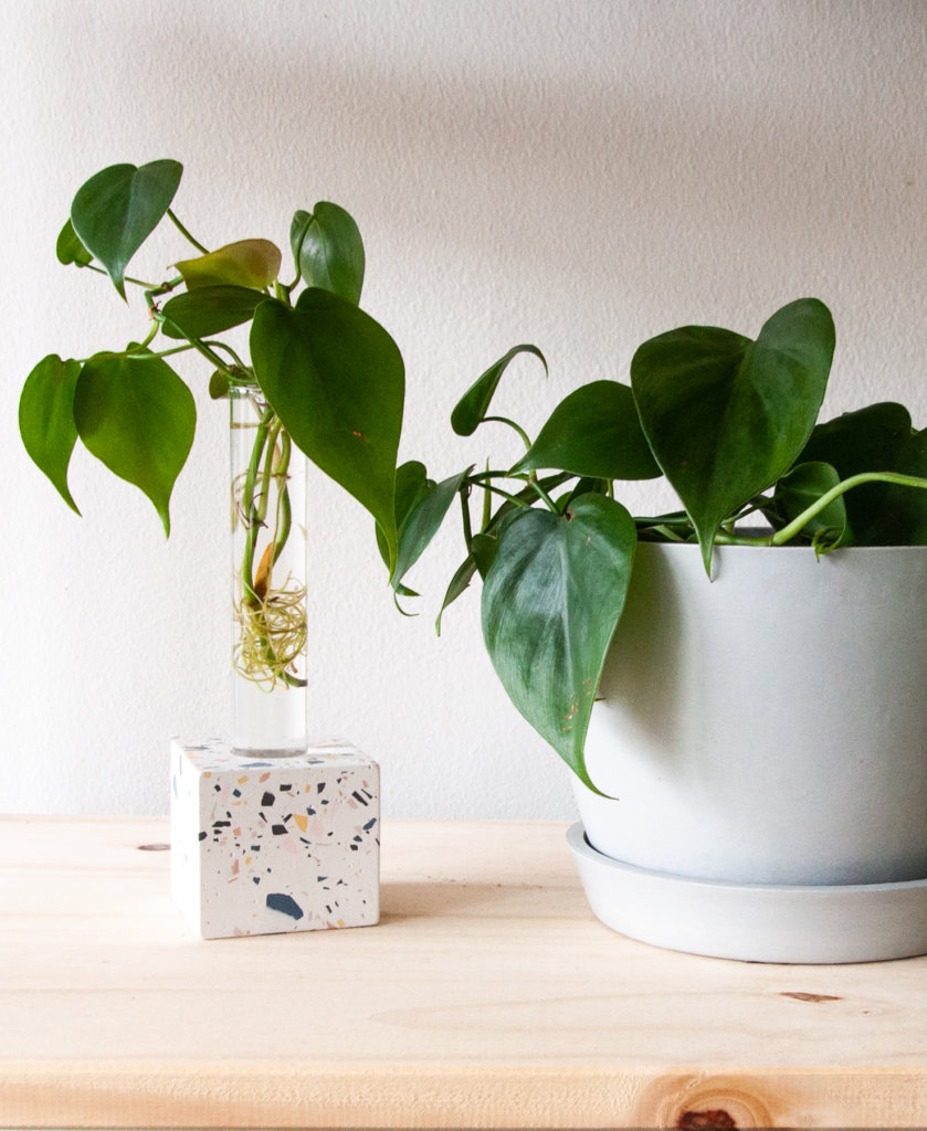 Keep reading for a deeper dive into propagation, but suffice to say that if you want to try your hand at propagating, the best place to start is with a pothos or philodendron cutting in a vessel of water. It takes virtually no effort and you can grow your collection for free—or prop and swap with friends.