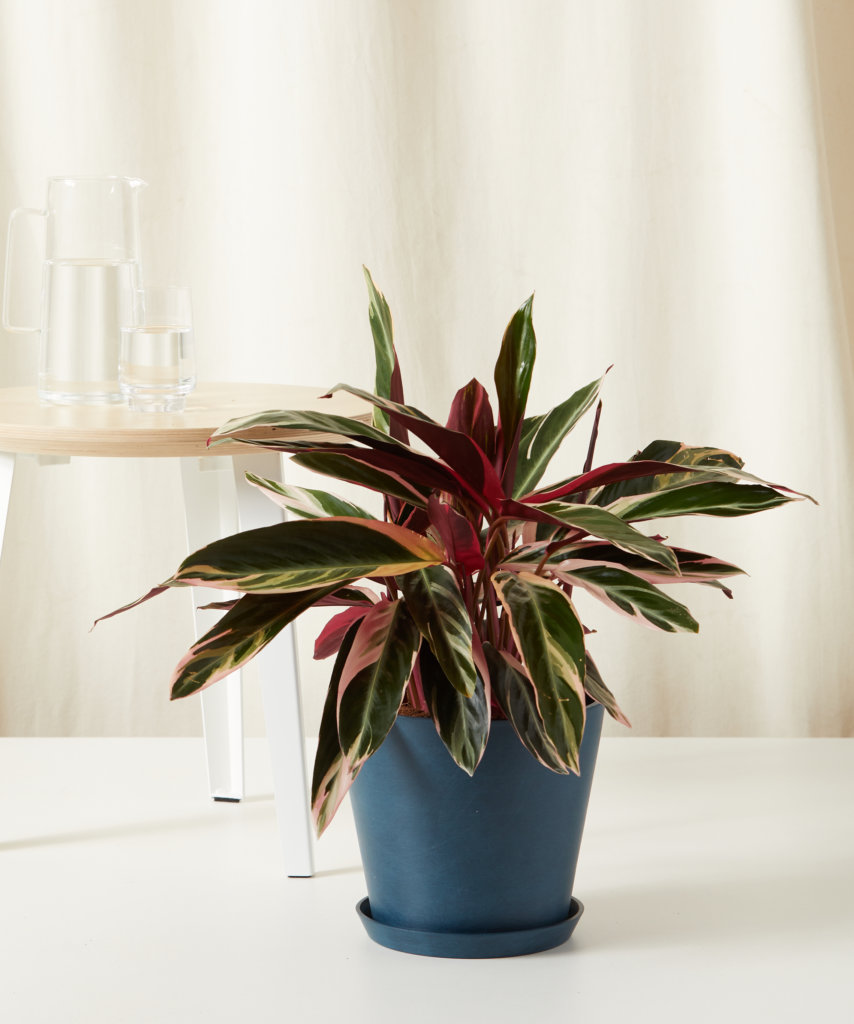 The pretty-in-pink Stromanthe Triostar serves double duty as a houseplant and a piece of living artwork. Displaying a vibrant palette of emerald and cream tones, the underside of the leaves flaunt a dramatic flash of magenta. As a member of the “prayer plant” family, its leaves dance throughout the day as they follow the light. At nighttime, they fold up as if in prayer, giving this plant a sweet sentiment along with its unmistakable beauty.