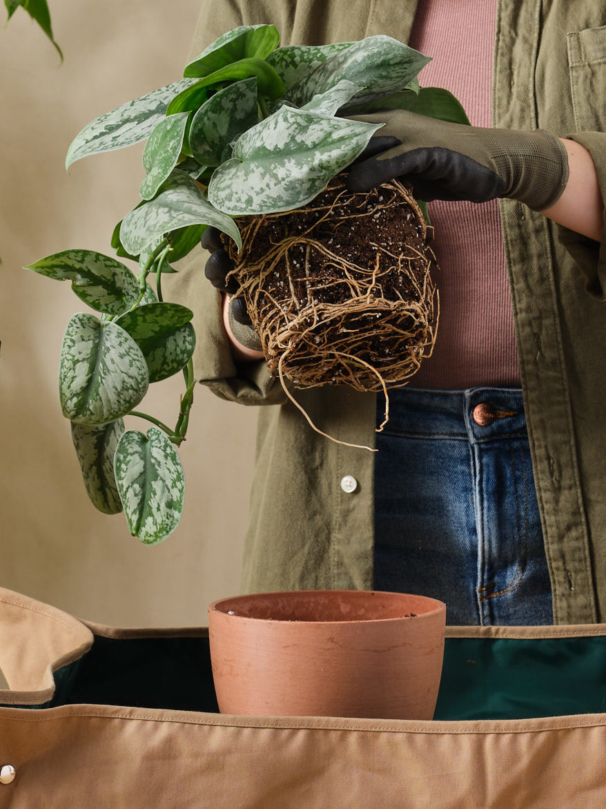 To tell if your plant is root bound, look for roots creeping up along the top of the soil, or see roots growing through the drainage holes at the bottom of the pot. Another sign that your plant is root bound is if when watering your plants the water rushes through the pot and out the drainage hole. You can also pull the plant out of the pot to closely inspect the roots. Read the Grow-How® Team’s blog on How to Repot Your Plants.