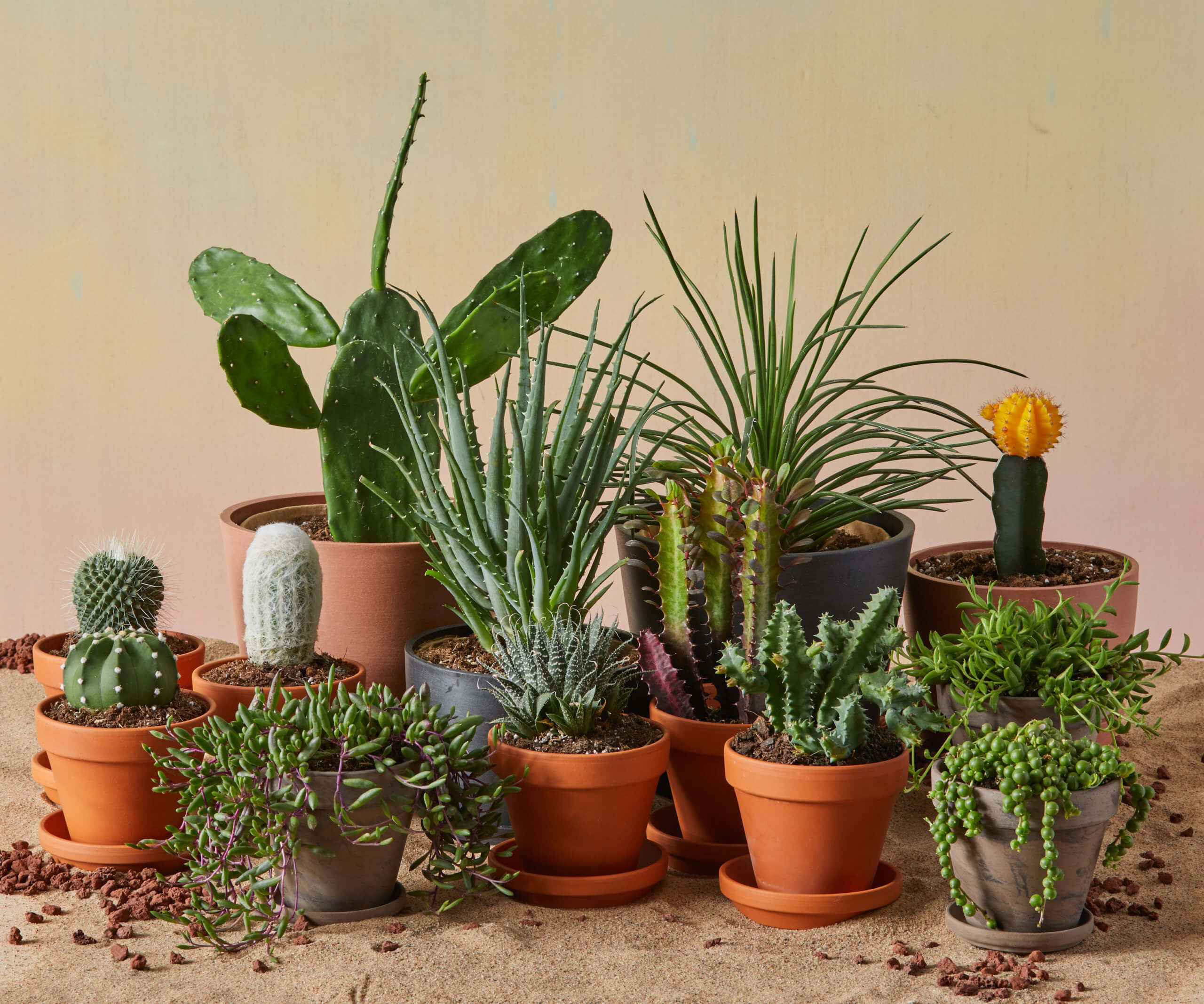 Succulents are made of tough stuff, and repotting them is fairly simple. Regardless, handle them gingerly, and wear gloves if you’re working with plants that have needles or sharp spines!