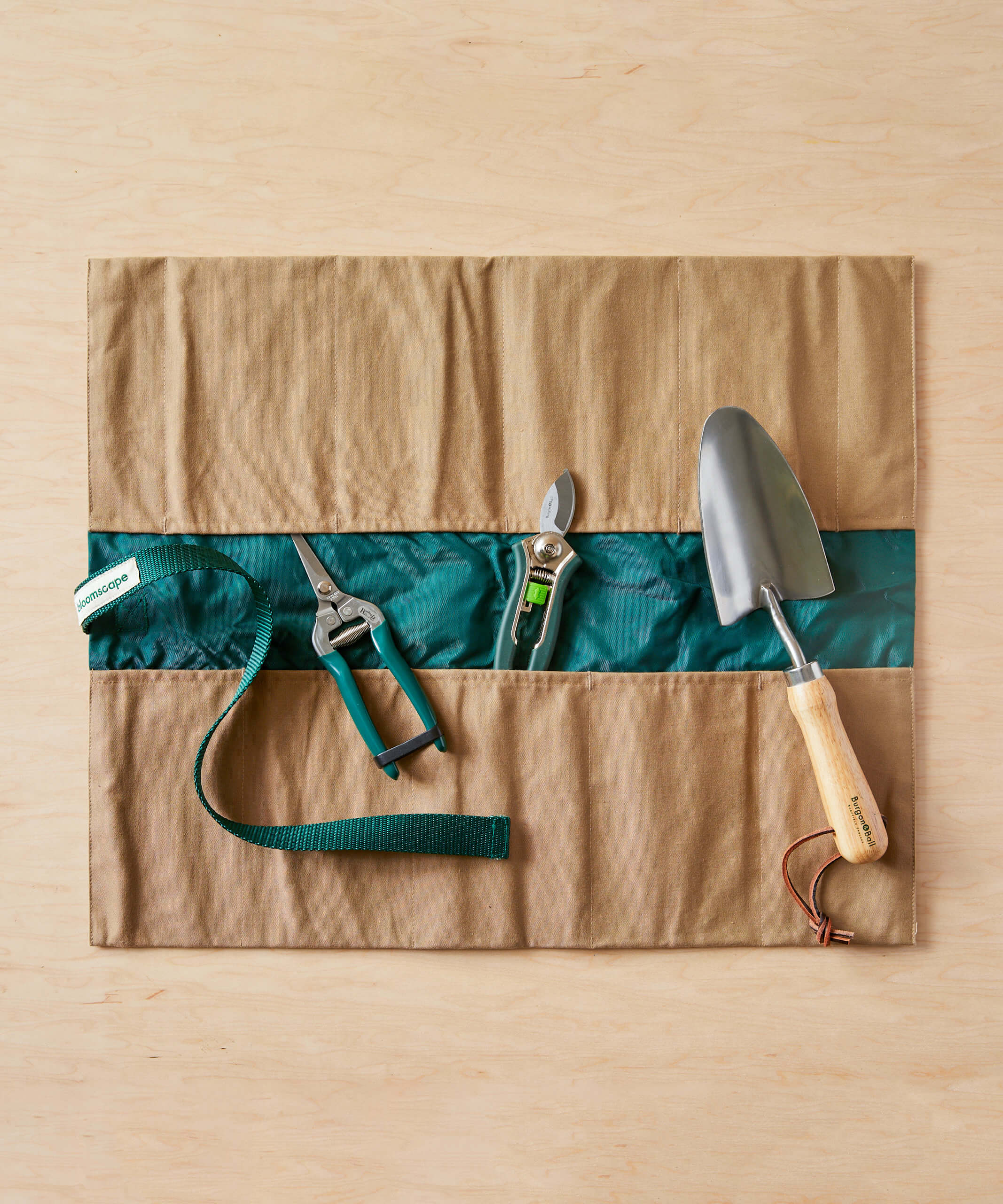For repotting and planting, the stainless steel hand trowel is a great assistant. The plant pruners are useful for cutting thicker stems and pruning larger plants while the plant snips are great for trimming and pruning thin to medium stems. All of these tools can be stored together in our stylish Tool Roll, made with water-resistant canvas and nylon to protect your gardening essentials. With 11 pockets for snips, trowels, and more, storing your tools has never been easier.