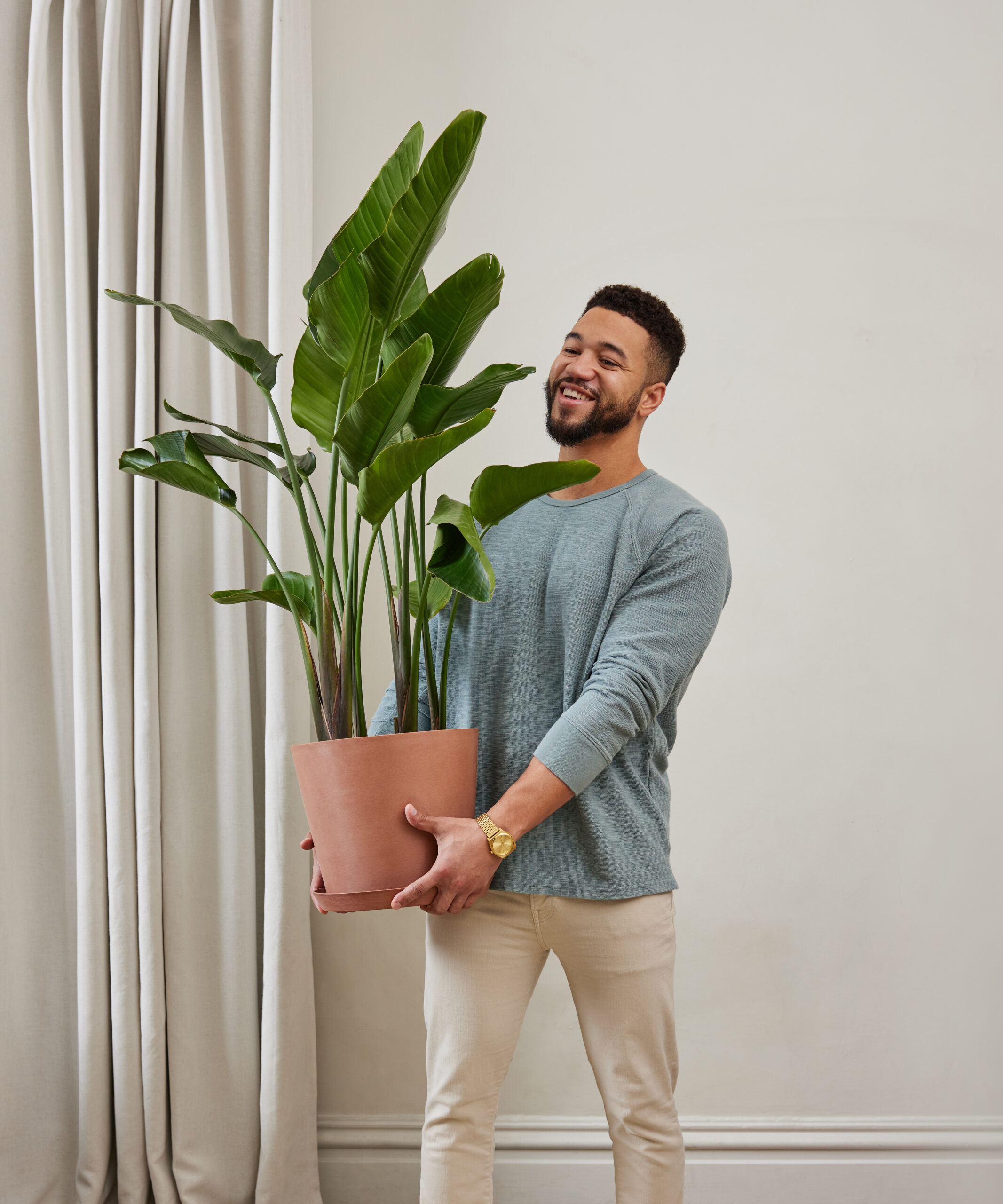 The Bird of Paradise is considered the queen of the indoor plant world. This large, upright plant adds a rich, tropical flair to your space as its glossy, banana-shaped leaves fan out. It is relatively hardy and adapts to a wide spectrum of light conditions from direct sun to low, indirect light, but will flourish in a sunny spot.