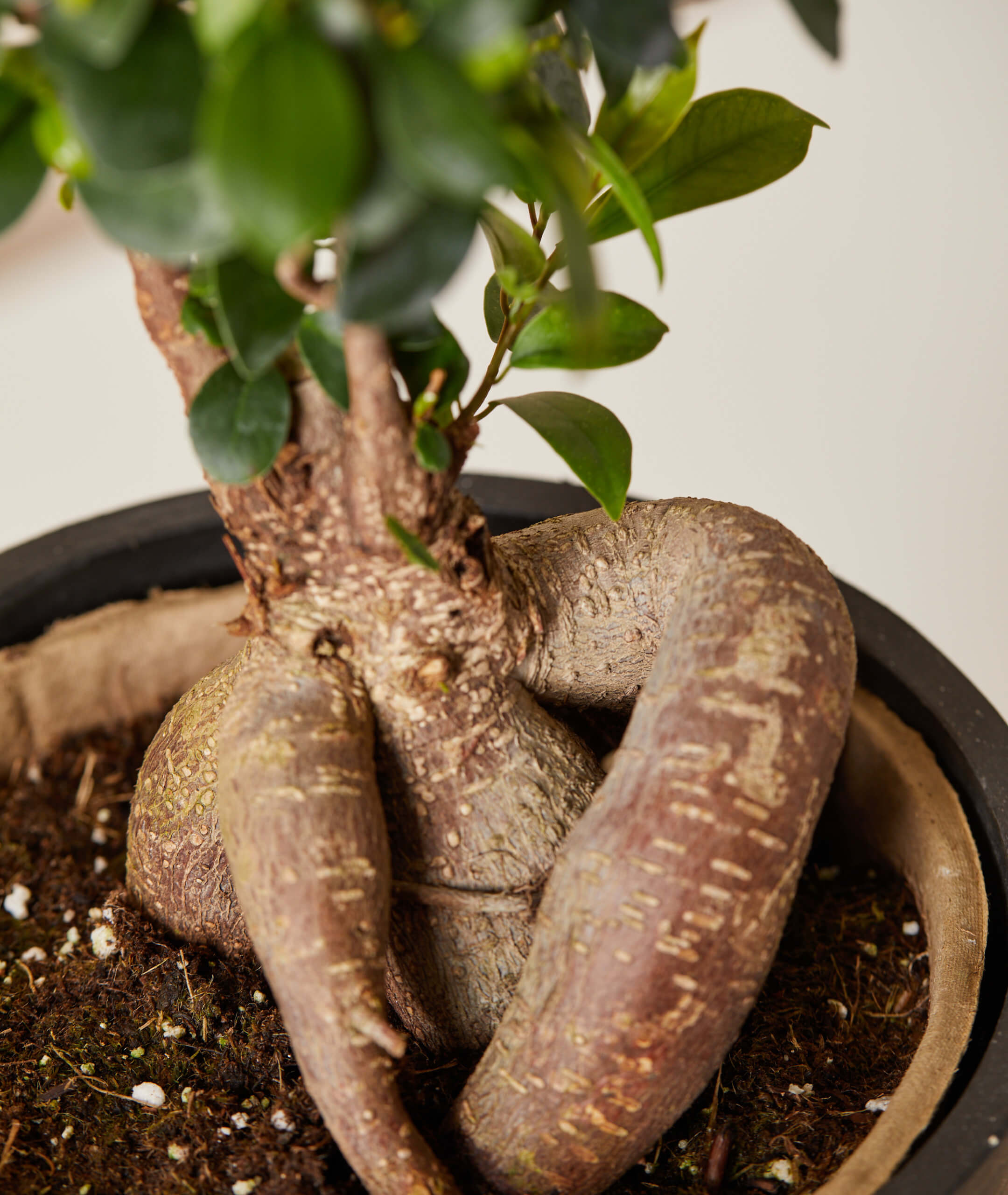 The Ficus Ginseng is native to the tropics and subtropics of Southern Asia and Australia. It prefers warm temperatures, bright indirect light, and high humidity. This plant is fairly low maintenance and is forgiving if you forget to water it occasionally, making it a great option for a houseplant.