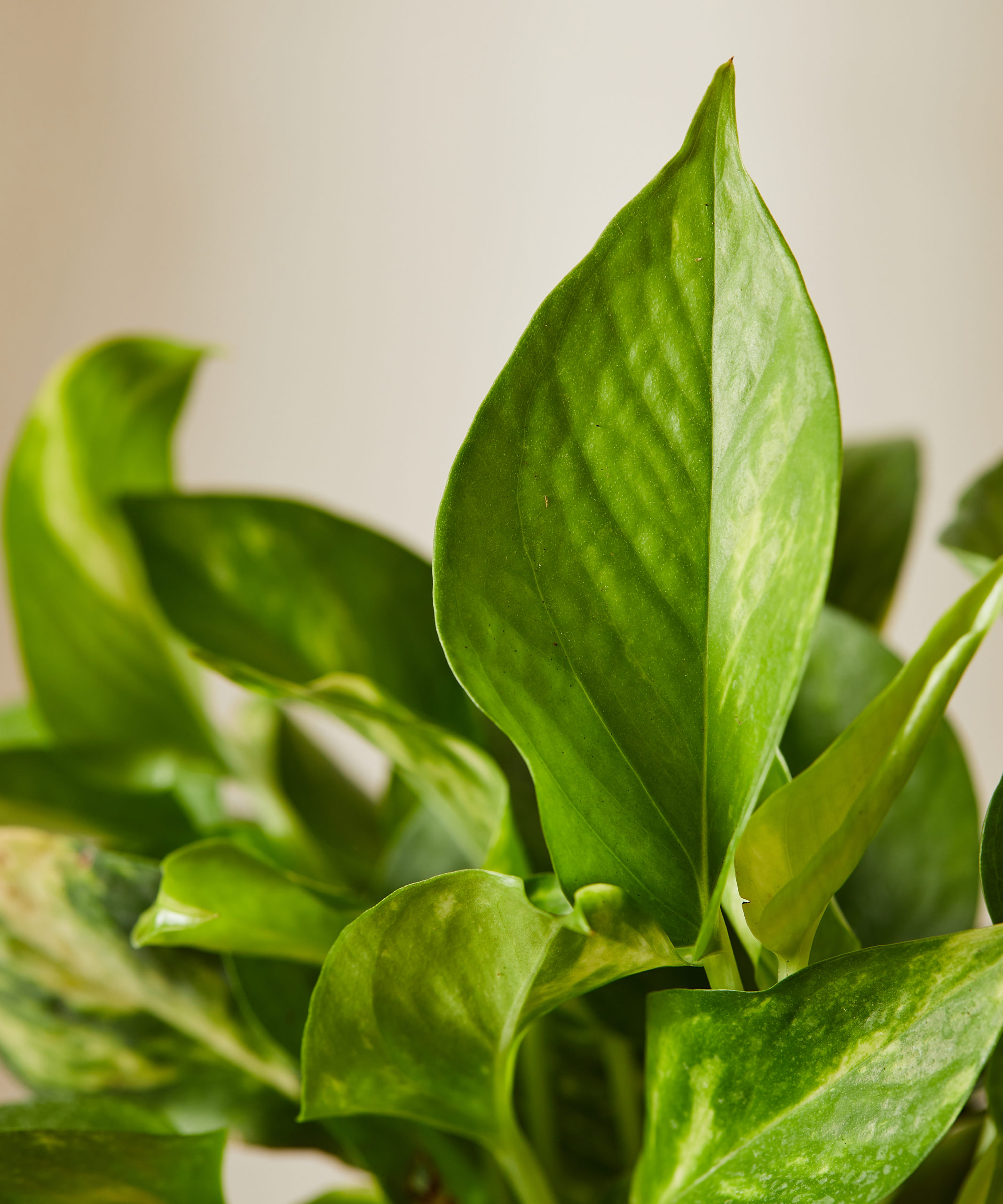 The Epipremnum genus, which includes pothos, is native to the tropical Solomon Islands. These plants can grow huge leaves if given something to climb on and are found in the wild growing on trees. Pothos can adapt from lower lighting to indirect light. Too little light and the variegation will fade. Water when the soil is mostly dry. Pothos are simple to propagate through leaf cuttings.