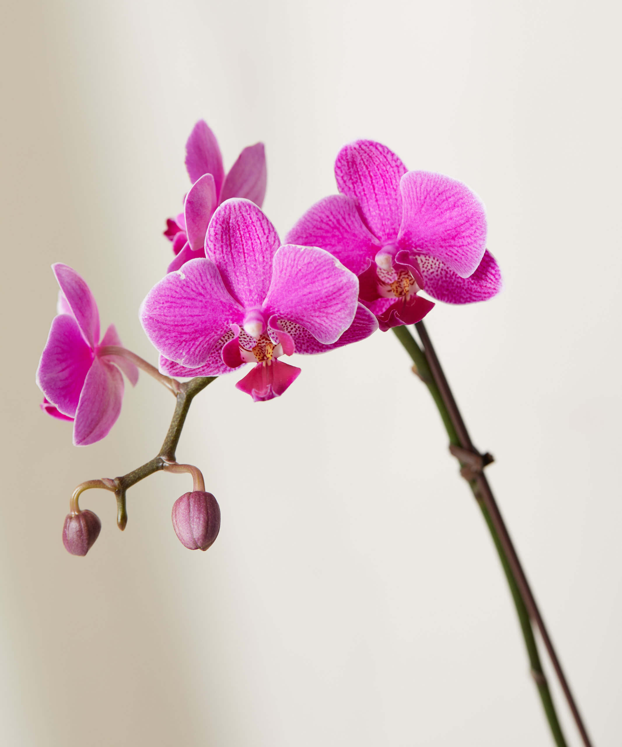 The Purple Orchid brings a splash of color with its velvety, virbrant blooms. Though petite, it makes a bold impact wherever it’s placed—from shelves to side tables. Like all Phalaenopsis Orchids, it’s a reblooming tropical plant that thrives with just a little attention.